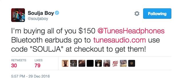 Claim Your Free $150 Tunes Audio Headphones from Soulja Boy Tell'em